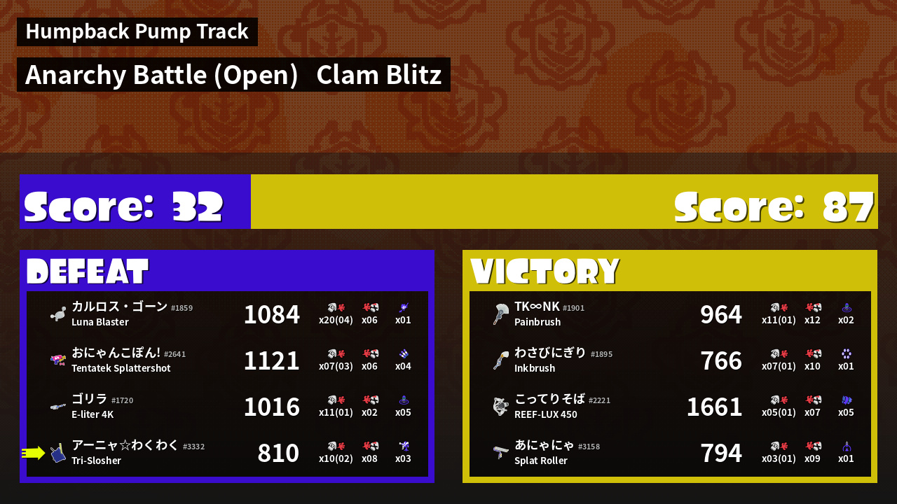 | Mode | Clam Blitz - Anarchy Battle (Open) | ||