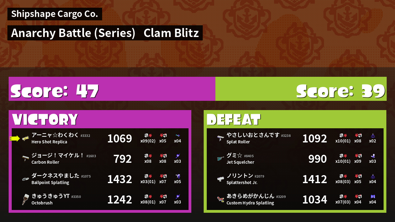 | Mode | Clam Blitz - Anarchy Battle (Series) | ||