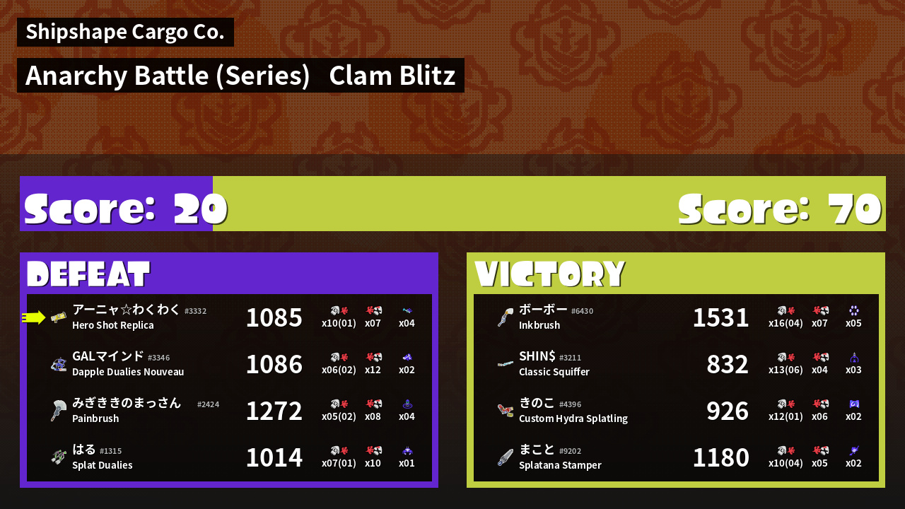 | Mode | Clam Blitz - Anarchy Battle (Series) | ||