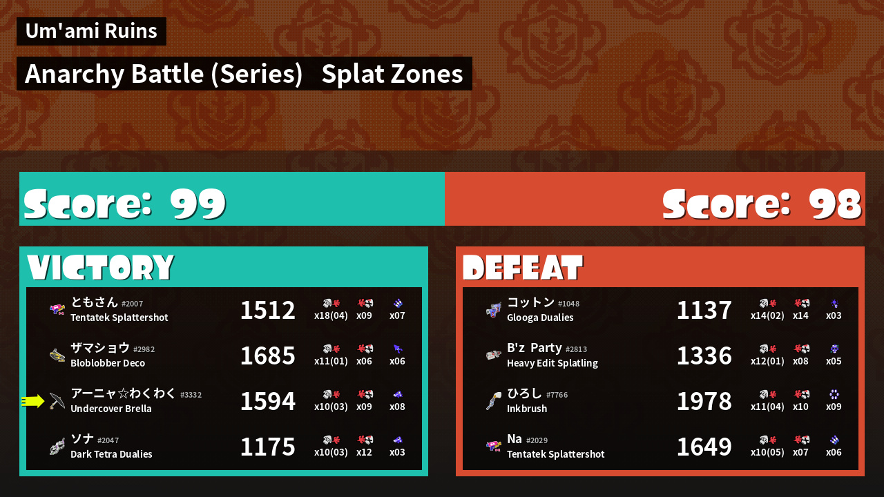 | Mode | Splat Zones - Anarchy Battle (Series) | ||