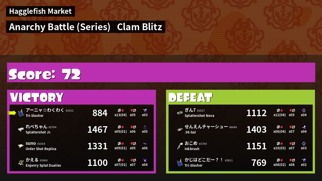 | Mode | Clam Blitz - Anarchy Battle (Series) | ||