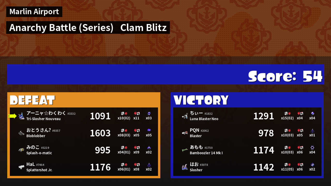| Mode | Clam Blitz - Anarchy Battle (Series) | ||