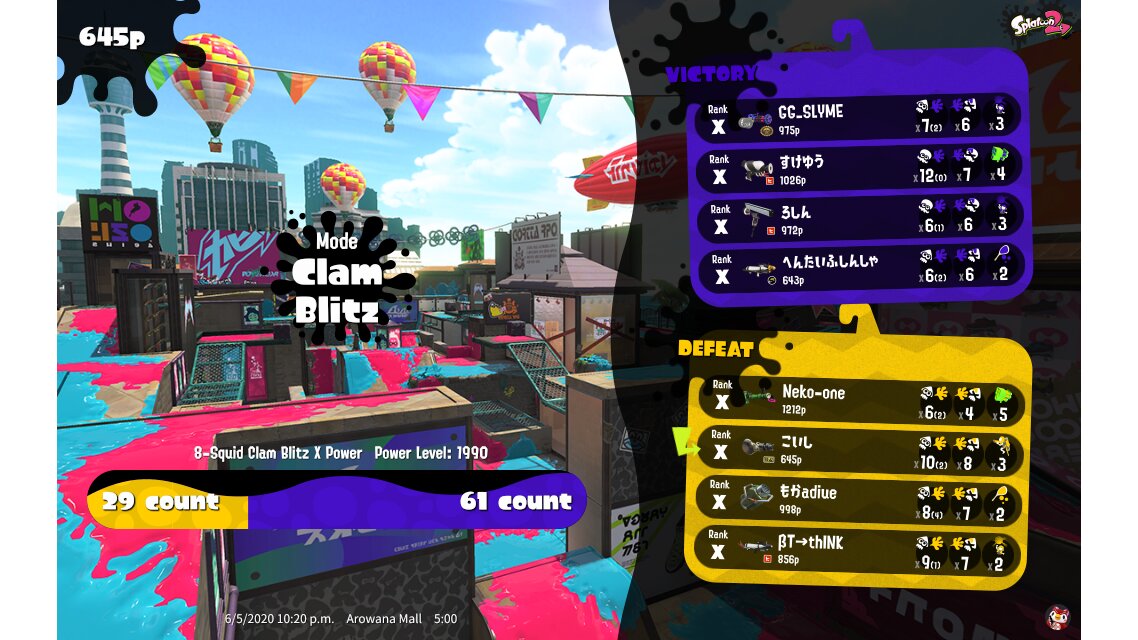 | Mode | Clam Blitz - Ranked Battle | |||||||||||||||||||||||||||||||||||||