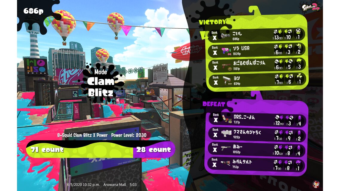 | Mode | Clam Blitz - Ranked Battle | ||||||||||||||||||||||||||||||||||