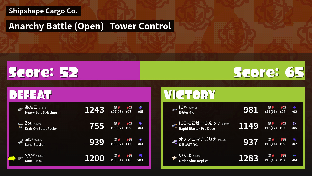 | Mode | Tower Control - Anarchy Battle (Open) | ||