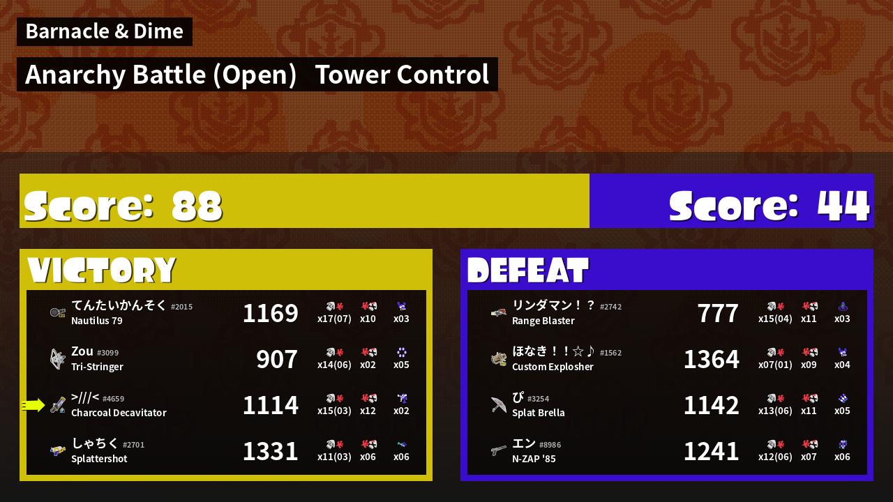 | Mode | Tower Control - Anarchy Battle (Open) | ||