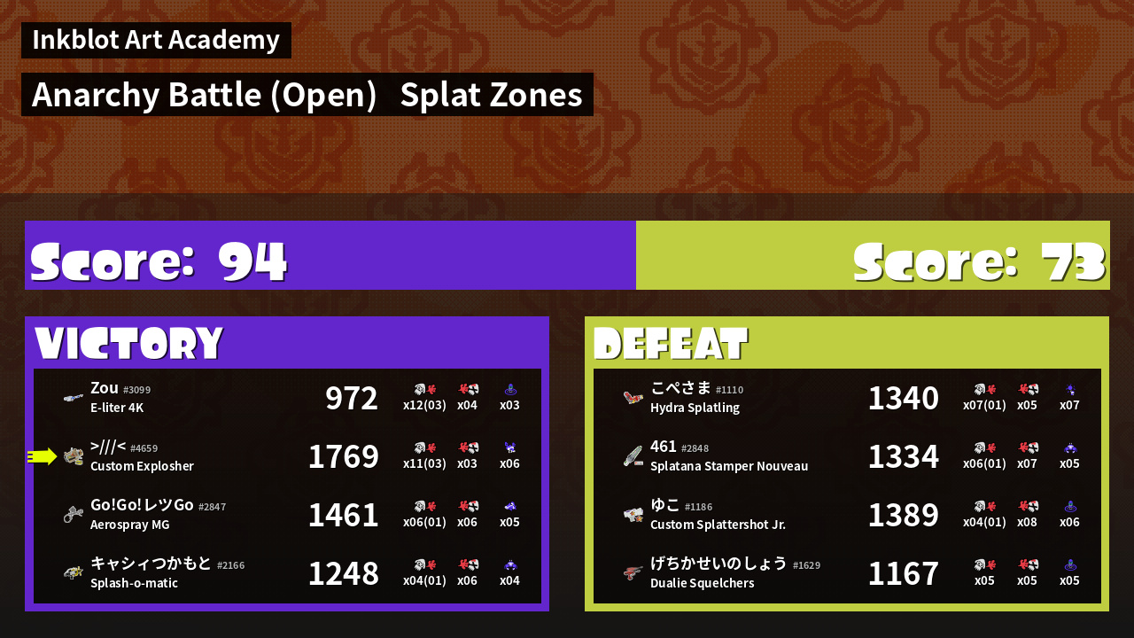 | Mode | Splat Zones - Anarchy Battle (Open) | ||