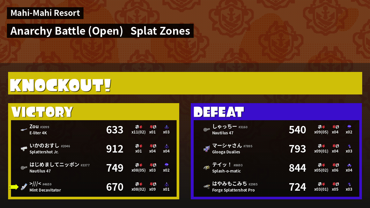 | Mode | Splat Zones - Anarchy Battle (Open) | ||
