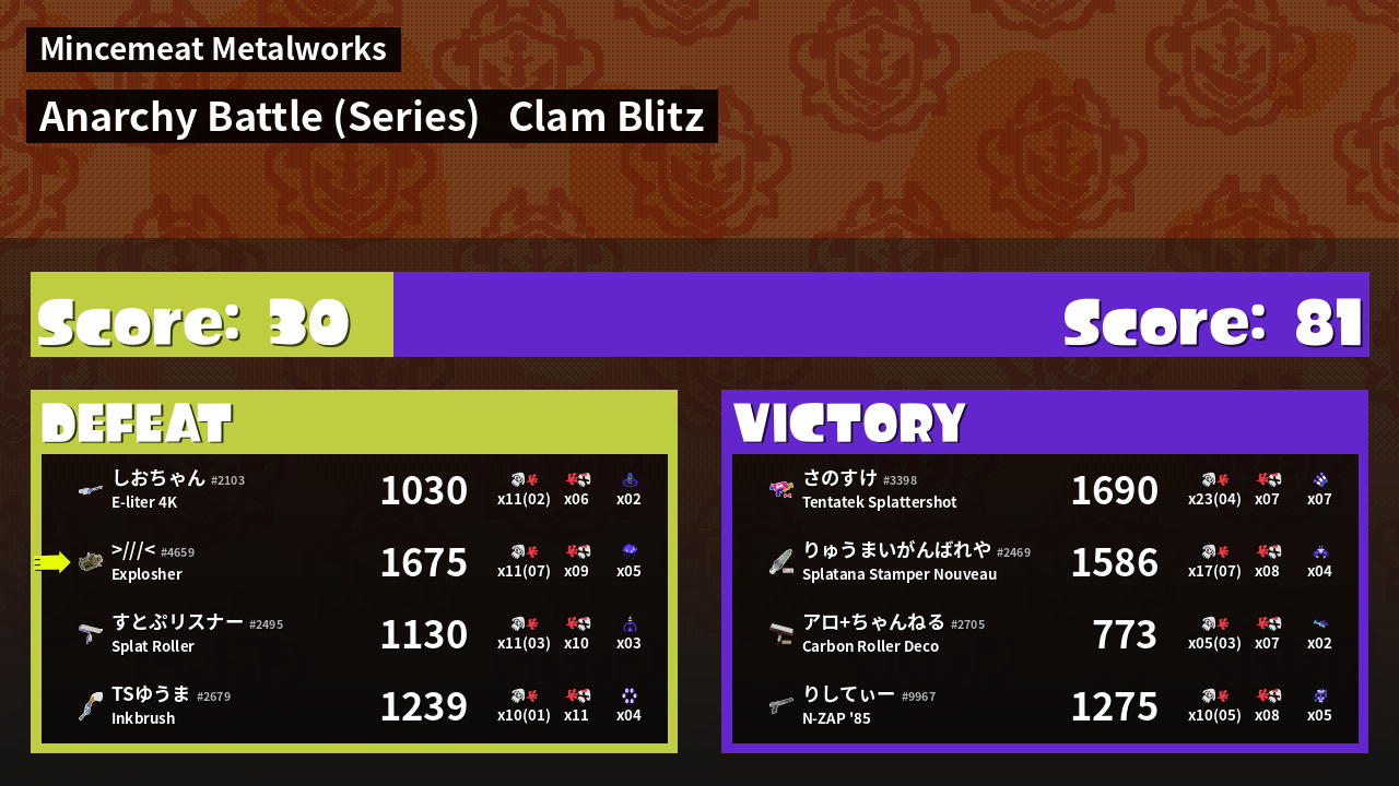 | Mode | Clam Blitz - Anarchy Battle (Series) | ||