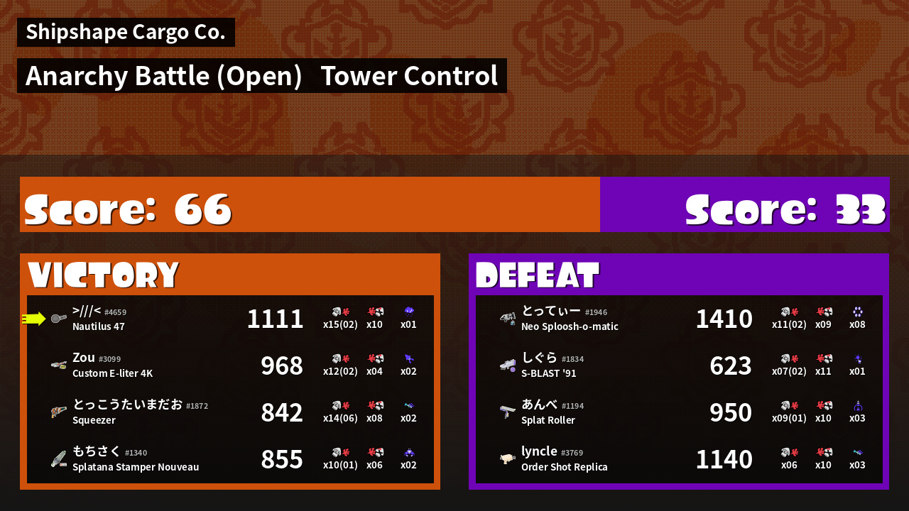| Mode | Tower Control - Anarchy Battle (Open) | ||
