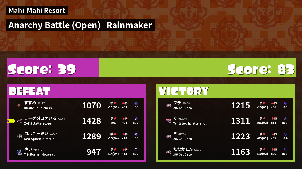 | Mode | Rainmaker - Anarchy Battle (Open) | ||