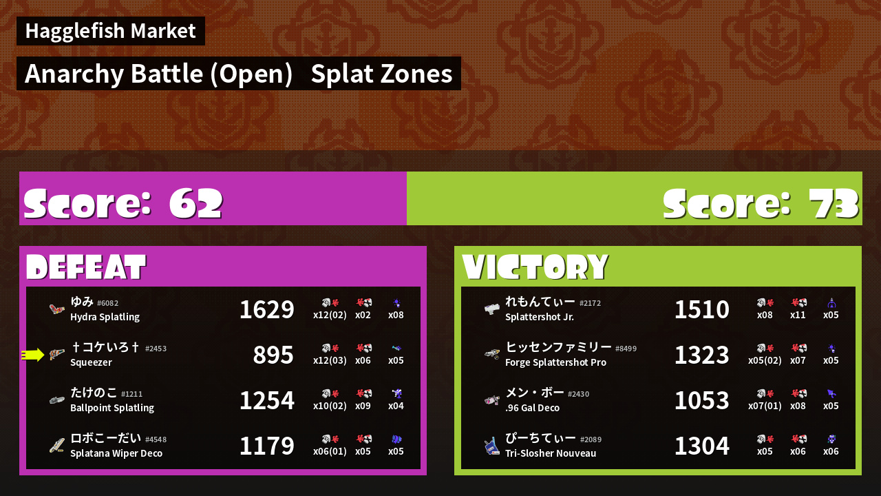 | Mode | Splat Zones - Anarchy Battle (Open) | ||