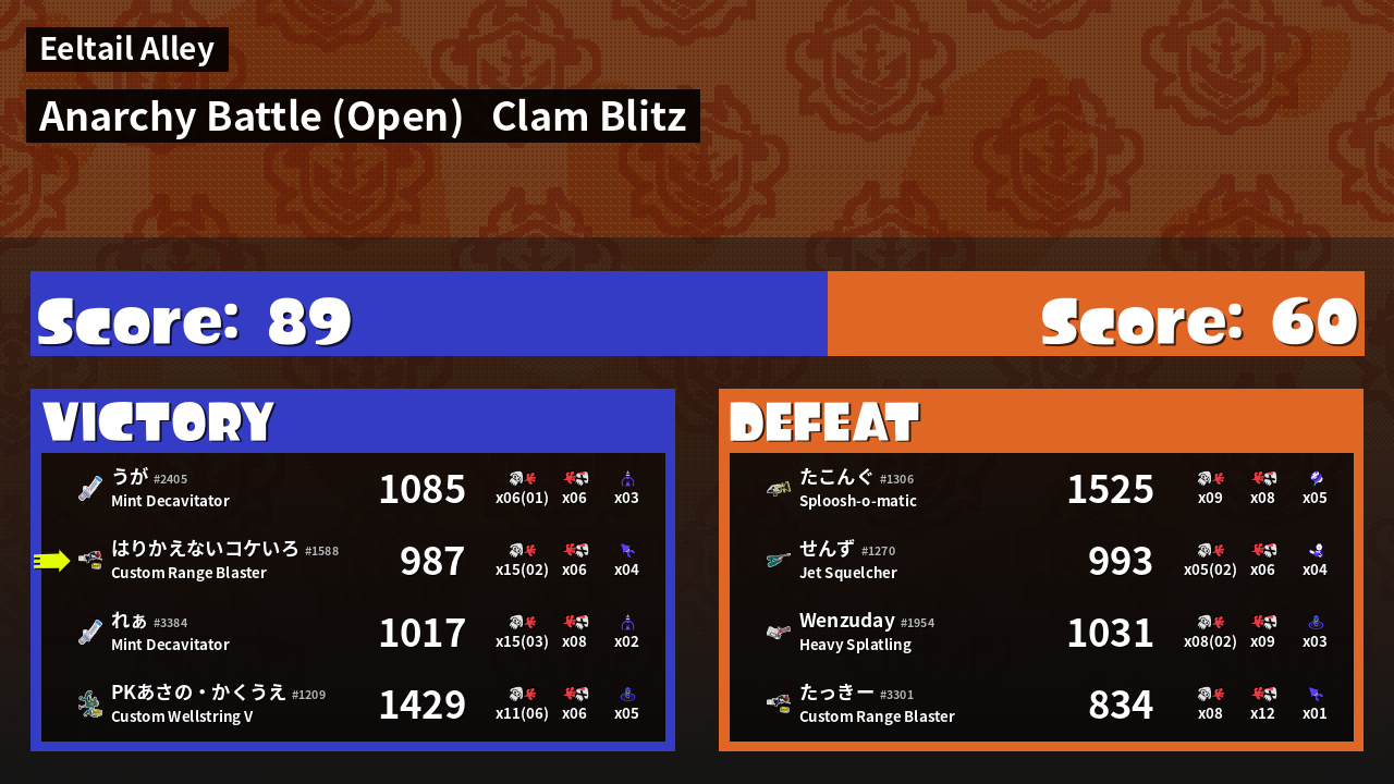 | Mode | Clam Blitz - Anarchy Battle (Open) | ||