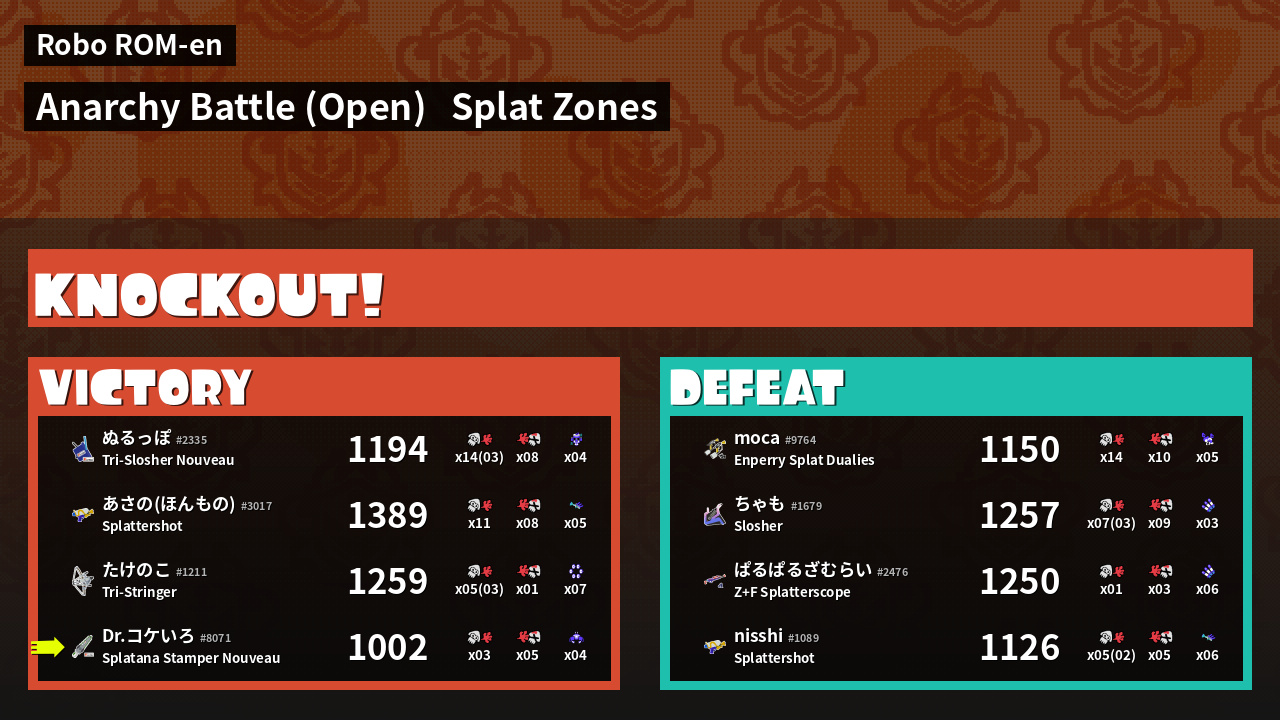 | Mode | Splat Zones - Anarchy Battle (Open) | ||