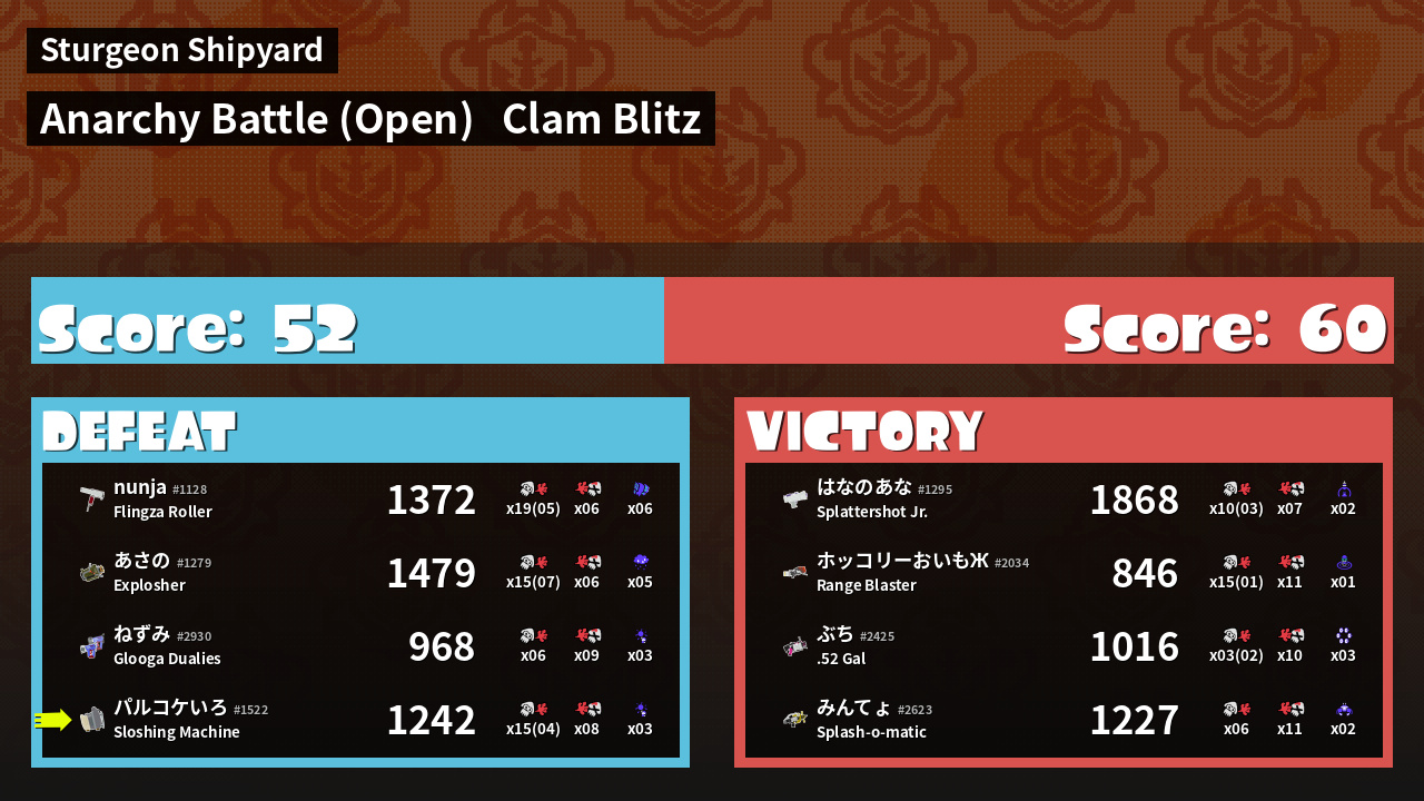 | Mode | Clam Blitz - Anarchy Battle (Open) | ||