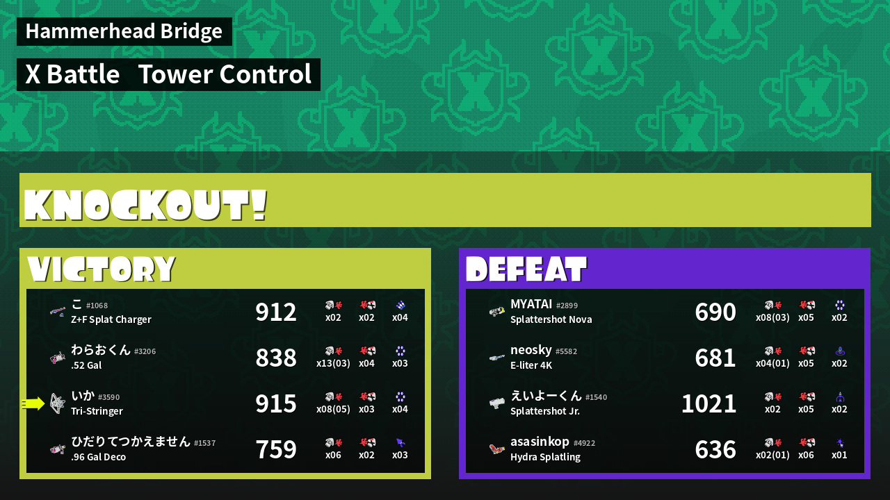 | Mode | Tower Control - X Battle | ||