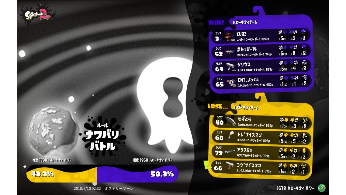 | Splatfest Power | 1,672.0 | |||||||||||||||||||||||||