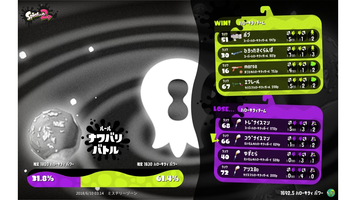 | Splatfest Power | 1,692.5 | |||||||||||||||||||||||||||||||
