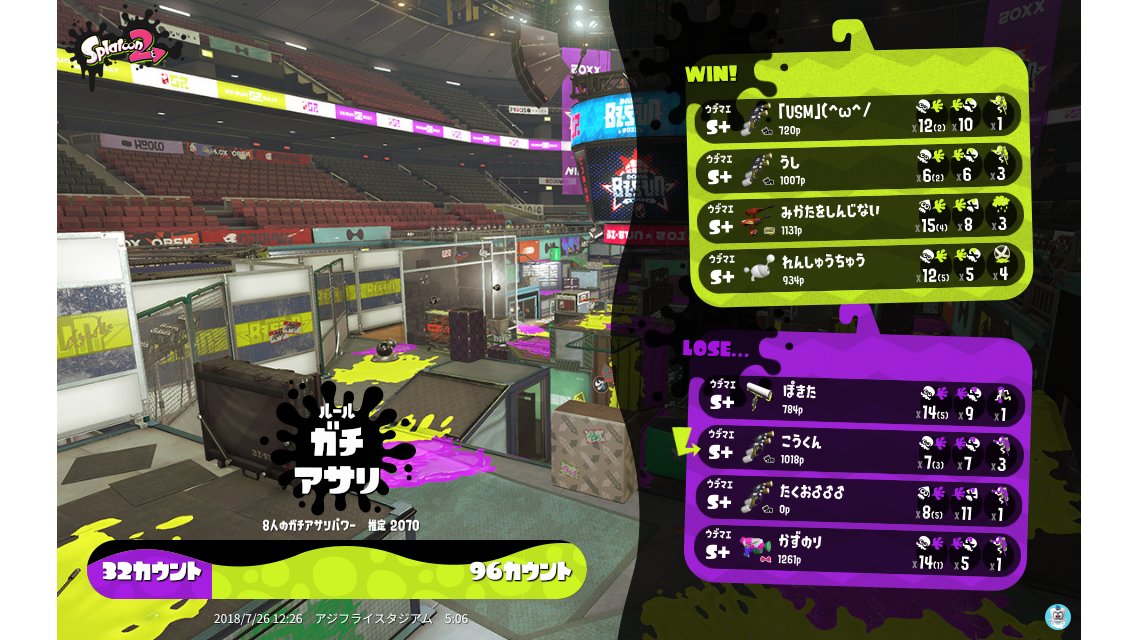 | Name | Weapon | Level | Rank | Inked | k+a/sp | k/d |