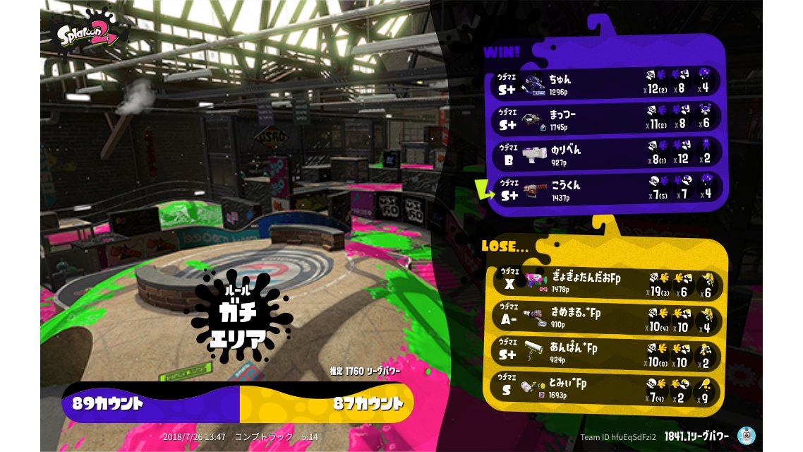 | Mode | Splat Zones - League Battle (Quad) | ||||||||||||||||||||||||||||