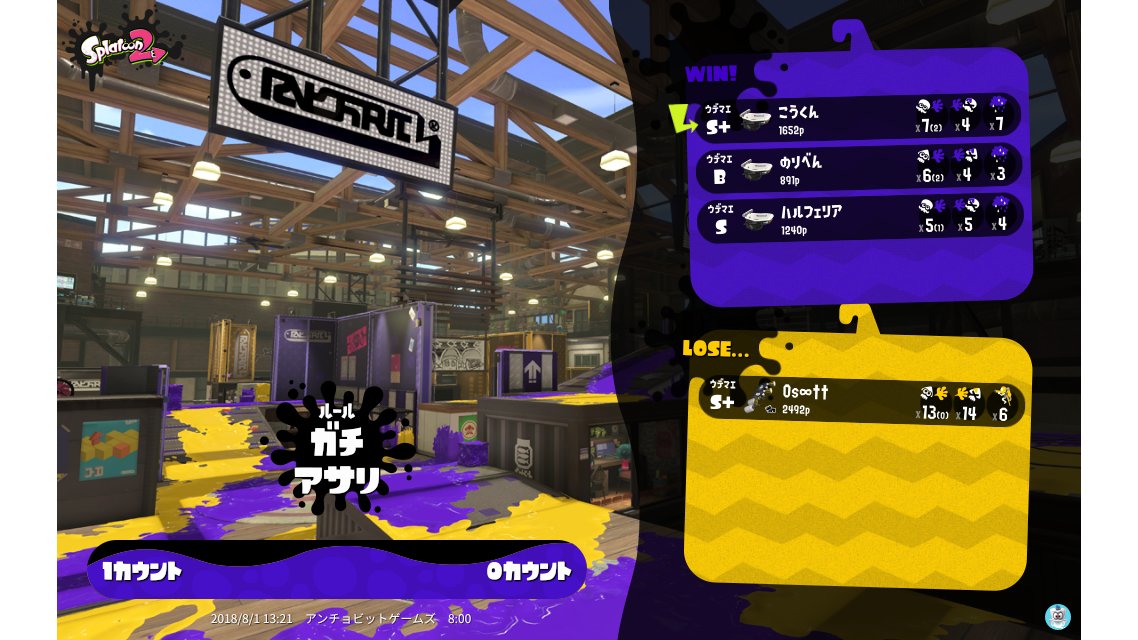 | Name | Weapon | Level | Rank | Inked | k+a/sp | k/d |