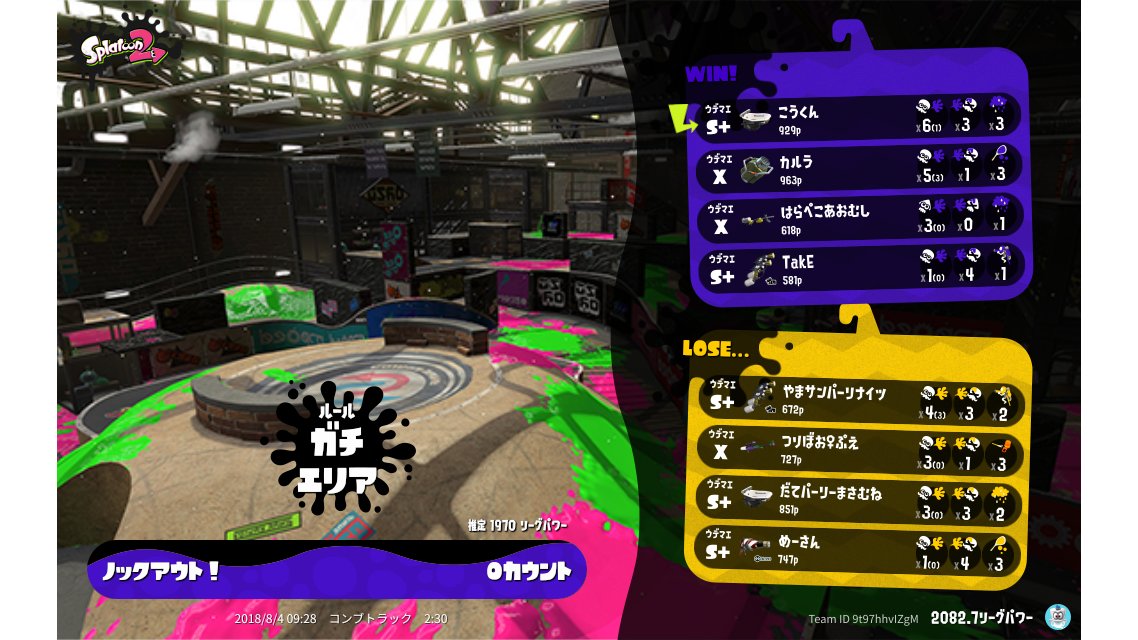 | Mode | Splat Zones - League Battle (Quad) | ||||||||||||||||||||||||||||