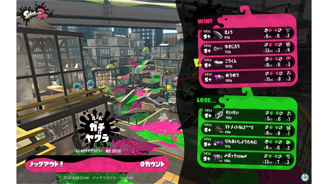 | Name | Weapon | Level | Rank | Inked | k+a/sp | k/d |