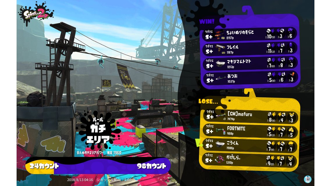 | Mode | Splat Zones - Ranked Battle | ||||||||||||||||||||||||||||