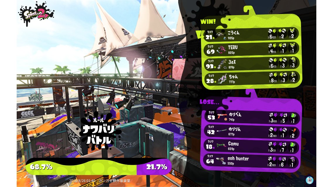 | Mode | Turf War - Regular Battle | ||||||||||||||||||||||||||||