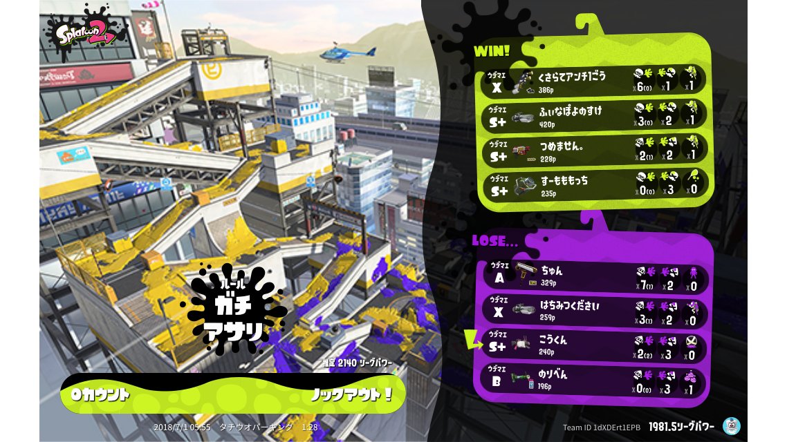 | Name | Weapon | Level | Rank | Inked | k+a/sp | k/d |