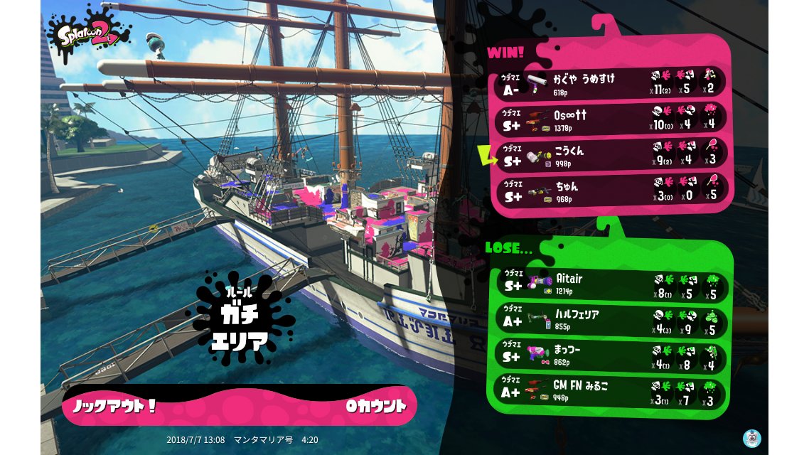 | Mode | Splat Zones - Private Battle | ||||||||||||||||||||||||||||
