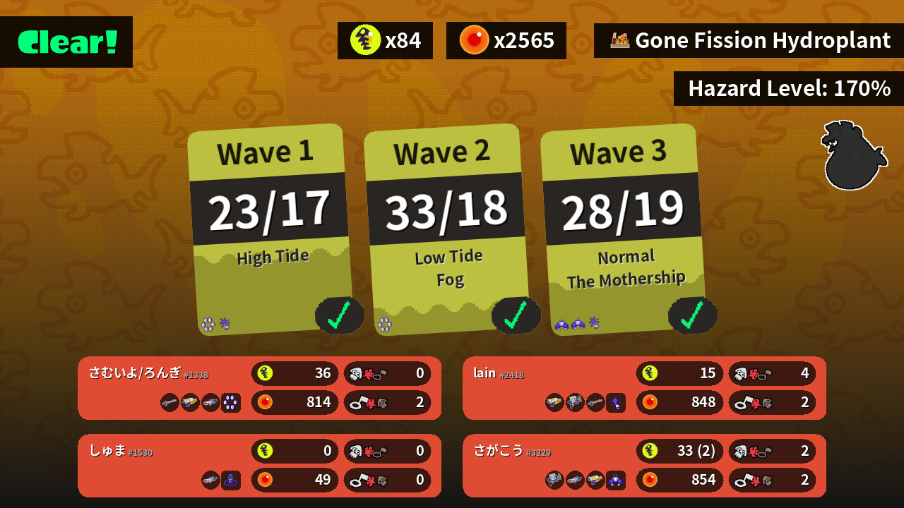 | Weapons | Snipewriter 5H Splattershot Splattershot Pro | Clash Blaster Splattershot Pro Splattershot | Splattershot Clash Blaster Snipewriter 5H | Splattershot Pro ? ? |