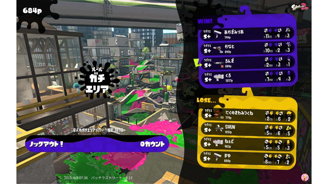 | Mode | Splat Zones - Ranked Battle | |||||||||||||||||||||||||||||||