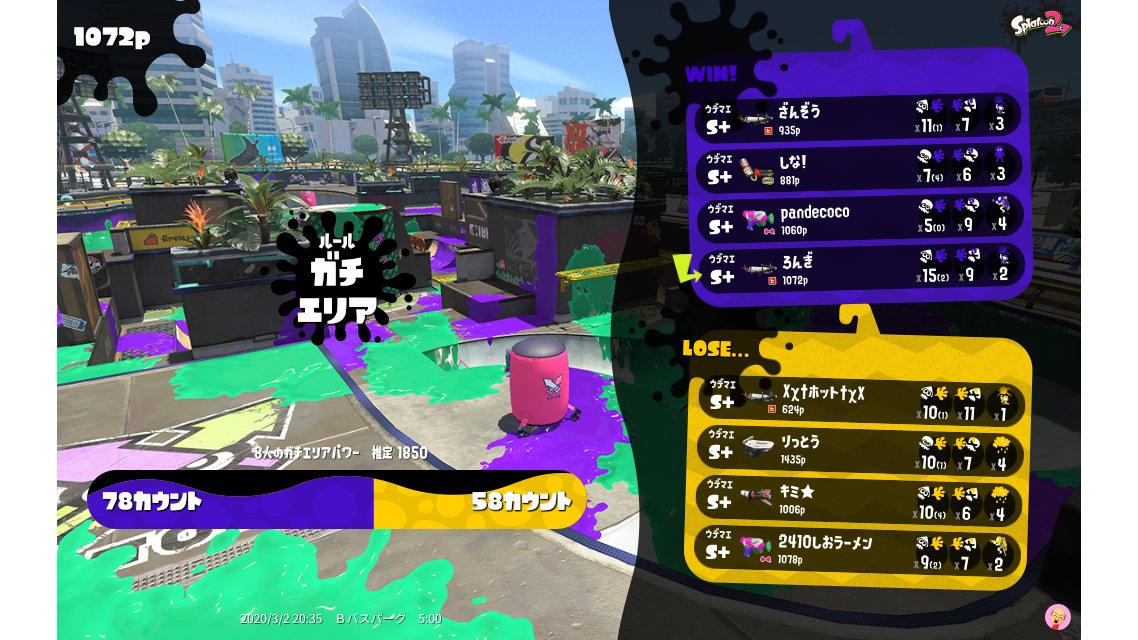 | Mode | Splat Zones - Ranked Battle | |||||||||||||||||||||||||||||||