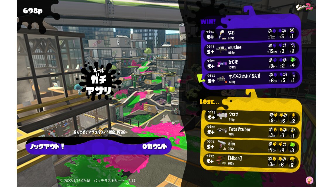 | Name | Weapon | Level | Rank | Inked | k+a/sp | k/d |