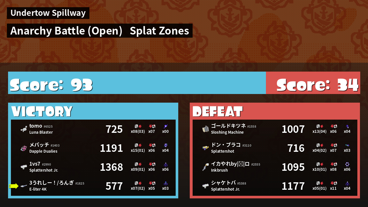 | Mode | Splat Zones - Anarchy Battle (Open) | ||