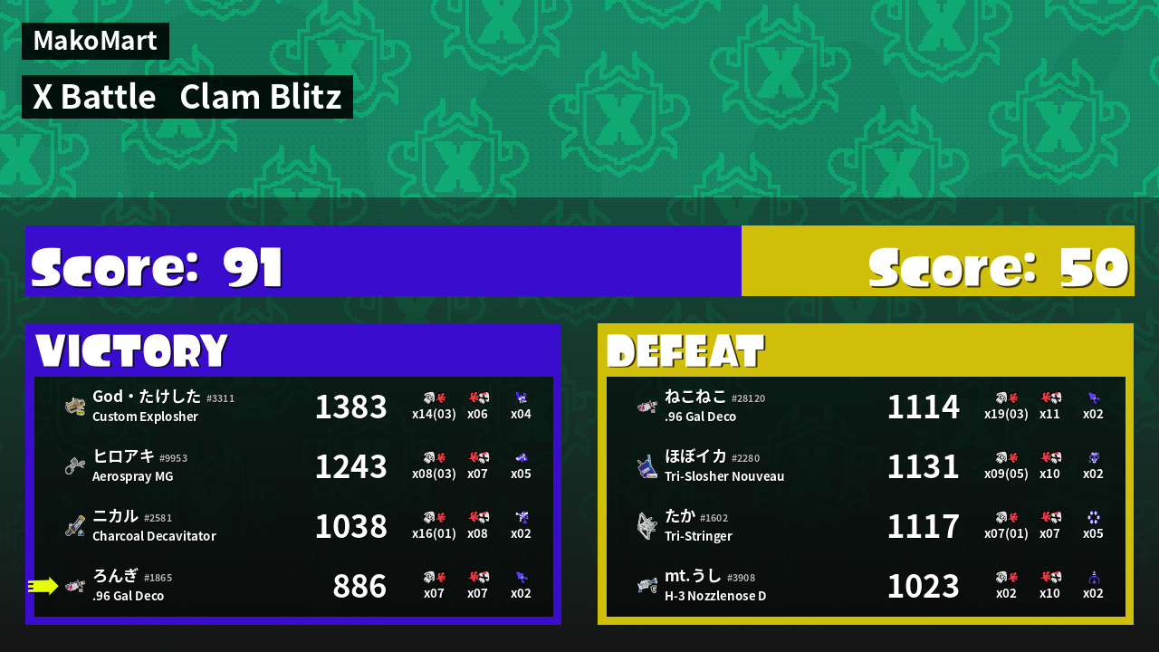| Mode | Clam Blitz - X Battle | ||