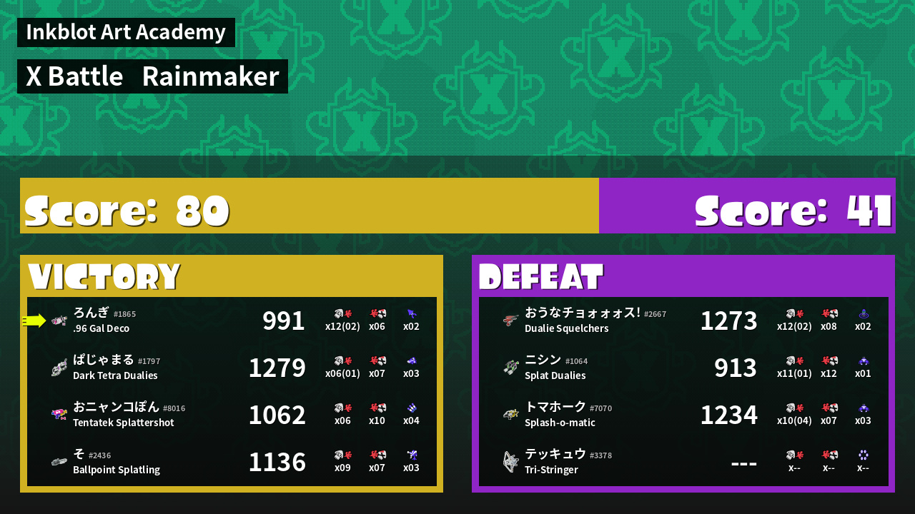 | Weapon | .96 Gal Deco ( Splash Wall / Kraken Royale) | ||