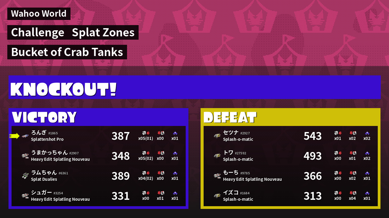 | Medals | #1 Overall Splatter #1 Splat Zone Guard #1 Enemy Splatter | ||