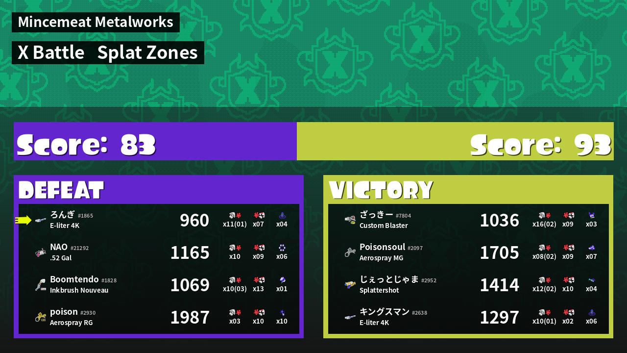 | Mode | Splat Zones - X Battle | ||