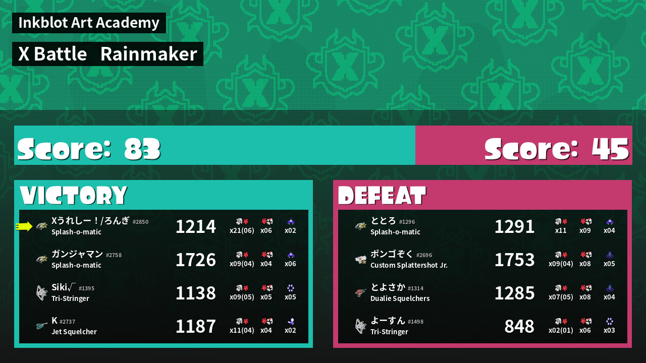| Medals | #1 Overall Splatter #1 Popular Target #1 Enemy Splatter | ||