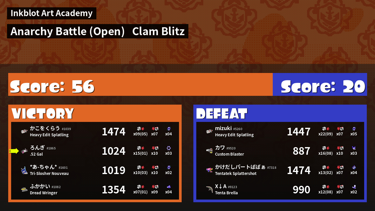 | Mode | Clam Blitz - Anarchy Battle (Open) | ||