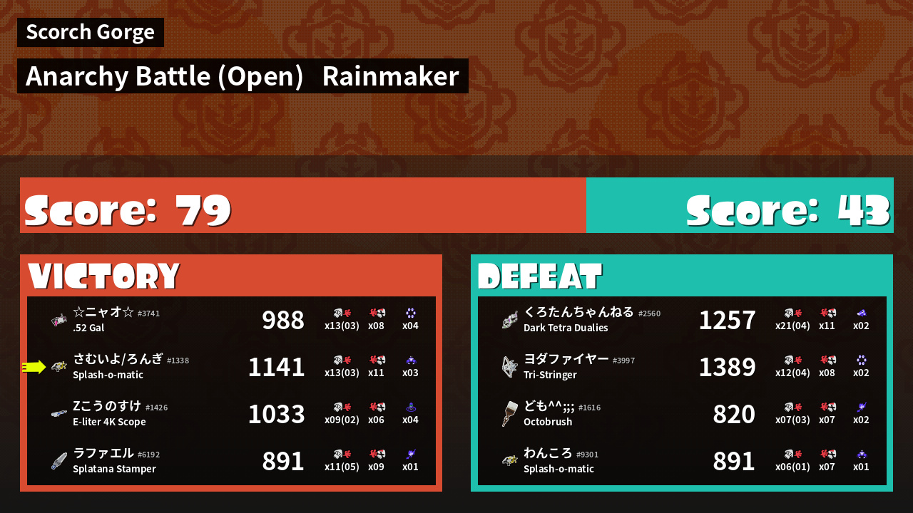 | Mode | Rainmaker - Anarchy Battle (Open) | ||