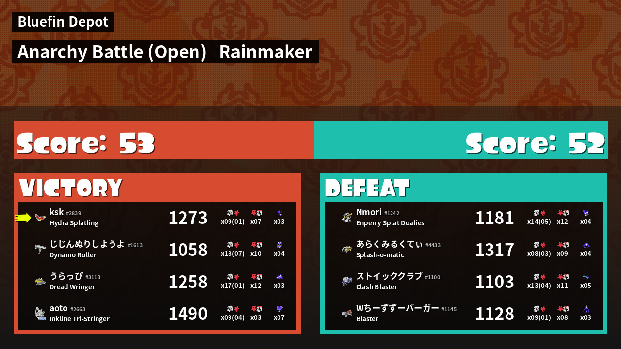 | 若い娘  ksk #2839 |  Hydra Splatling                    | 1,273 | 8 + 1 | 7 | 1.14 |  3 | |