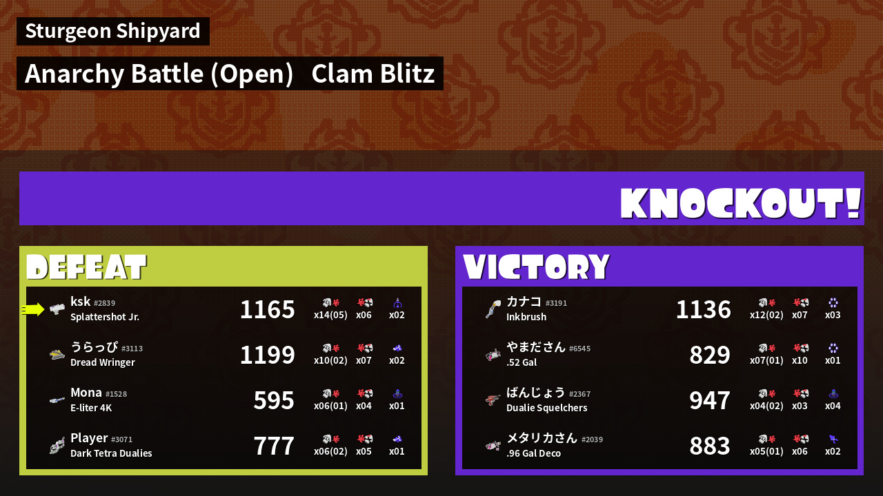 Name | Weapon | Inked | ![]() |