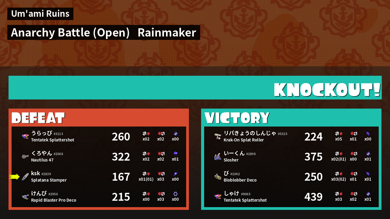 | Mode | Rainmaker - Anarchy Battle (Open) | ||