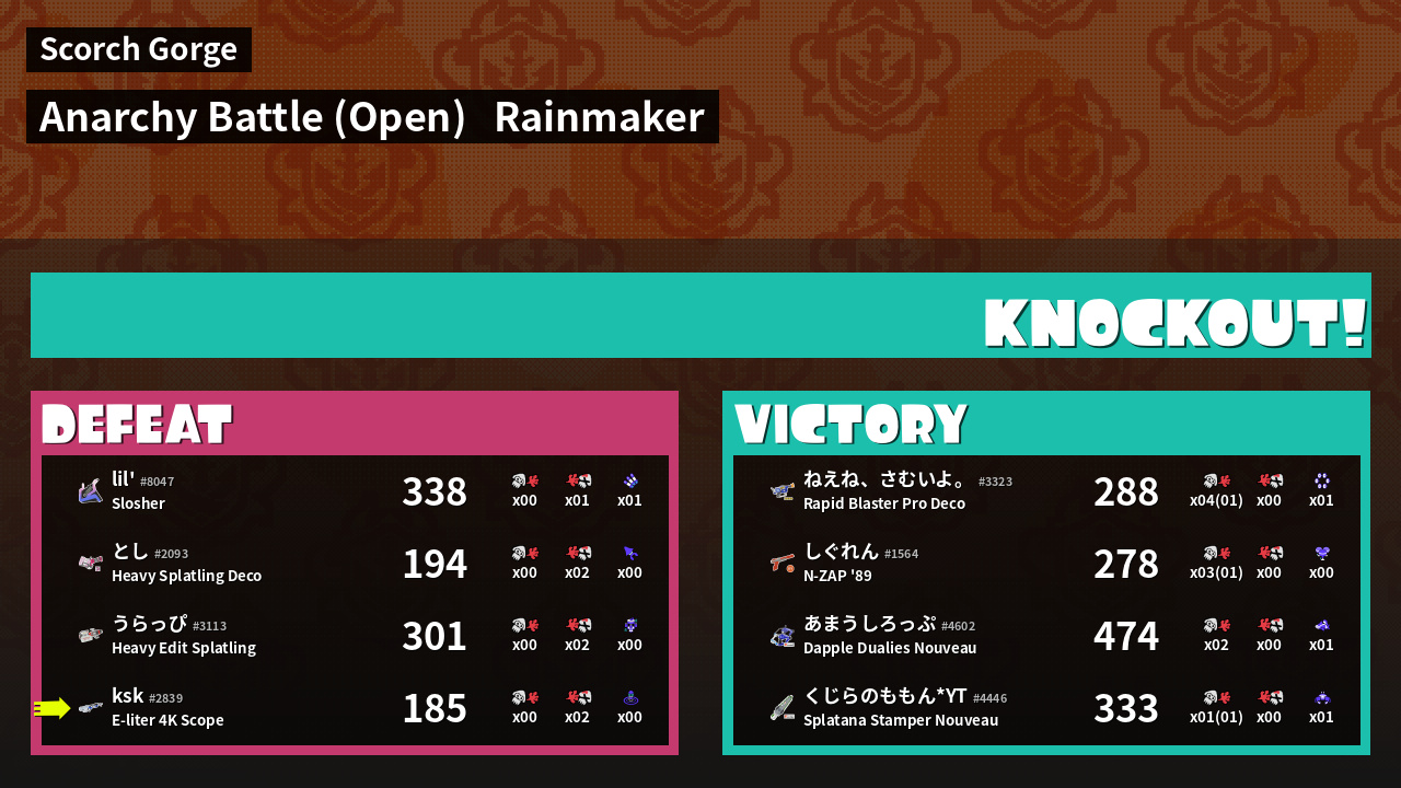 | Mode | Rainmaker - Anarchy Battle (Open) | ||
