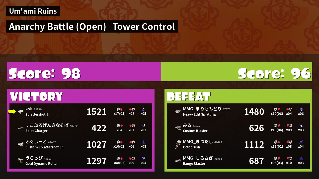 | Mode | Tower Control - Anarchy Battle (Open) | ||