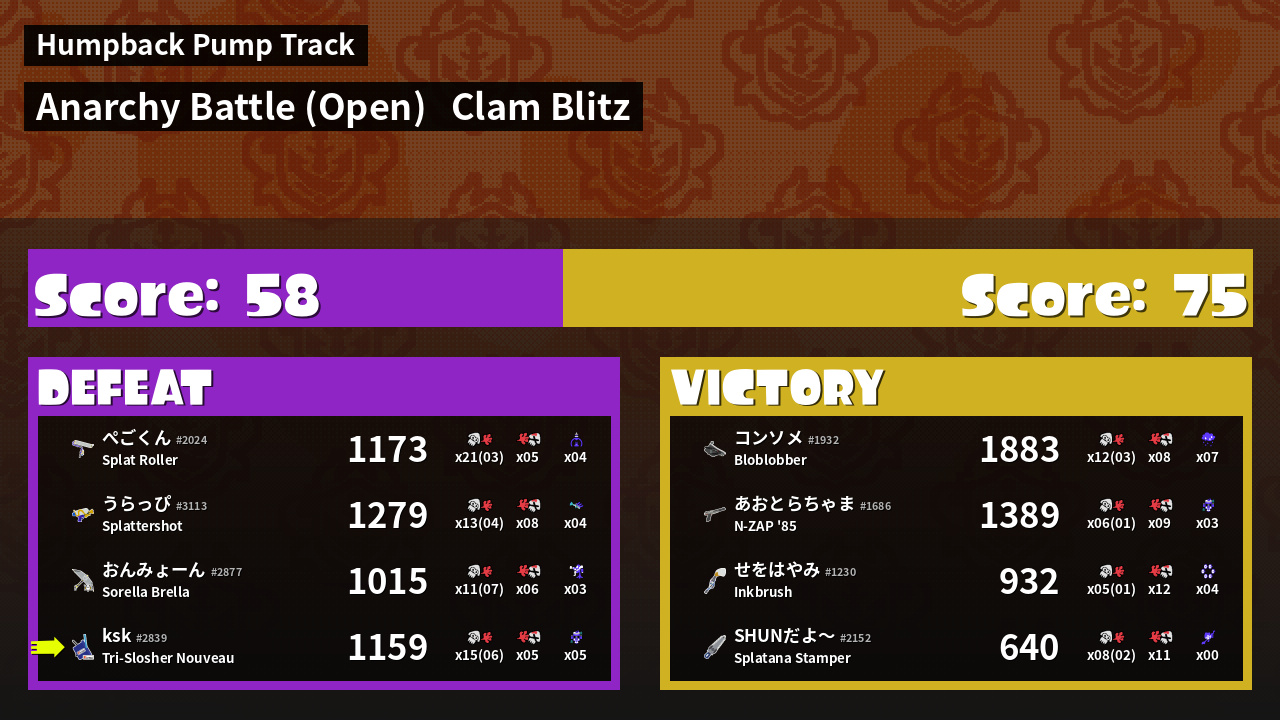 | Mode | Clam Blitz - Anarchy Battle (Open) | ||