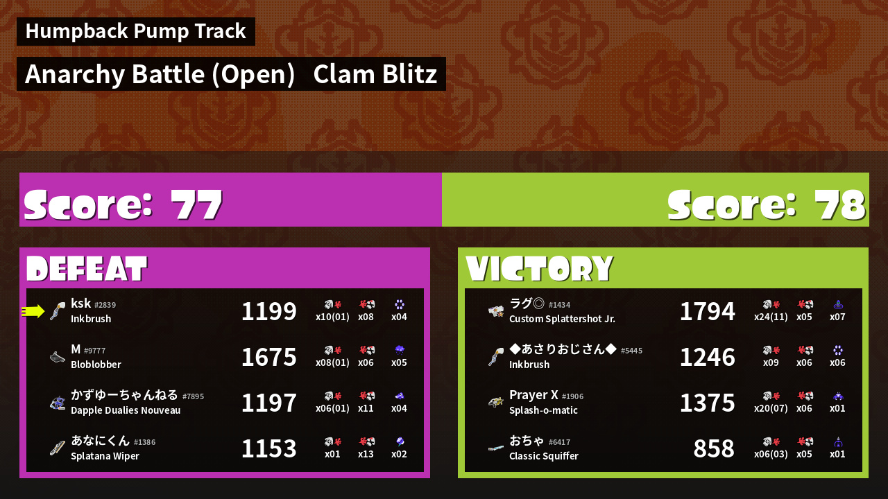| Mode | Clam Blitz - Anarchy Battle (Open) | ||
